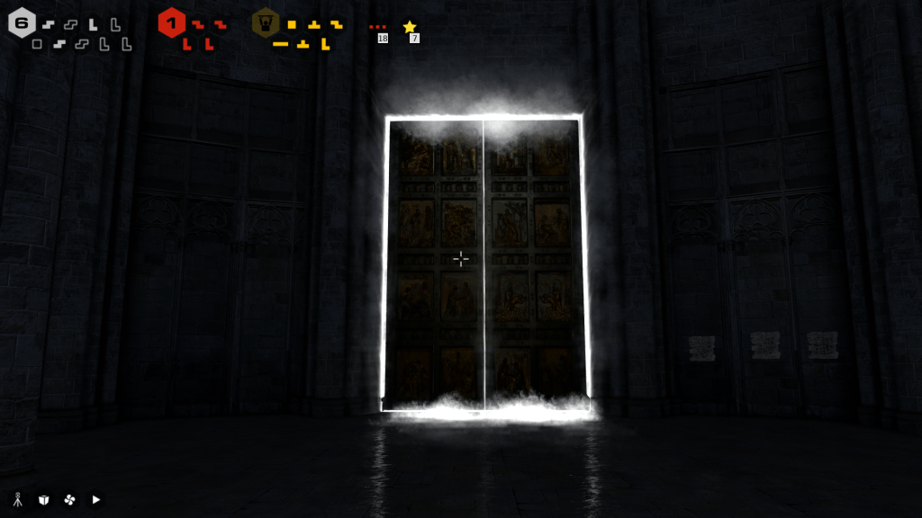 When all stars have been found in World C (and three in the Tower), a blocked door in EL0HIM’s cathedral is opened.