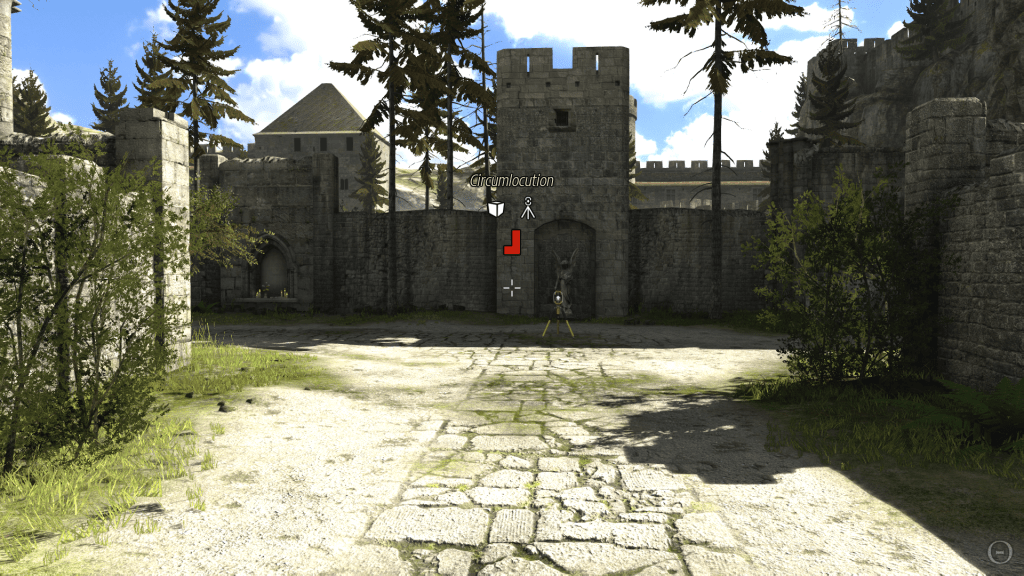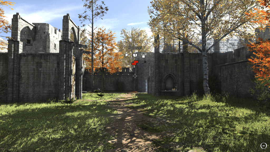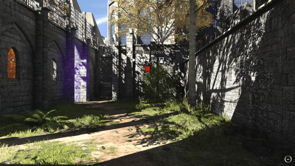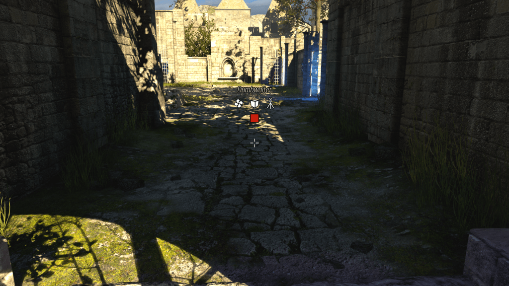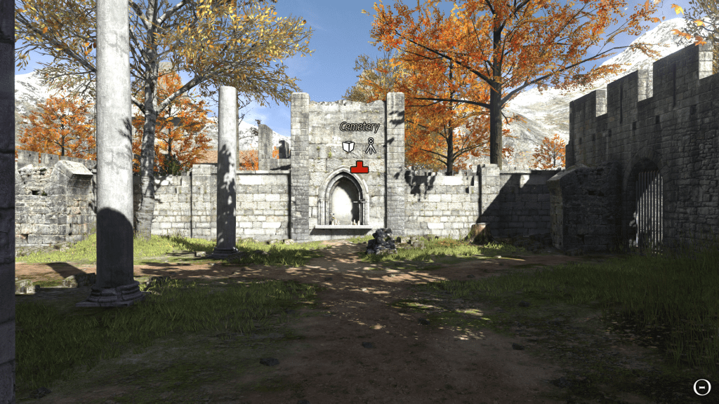 The entrance is blocked, until the player acquires the axe, found in the cathedral.