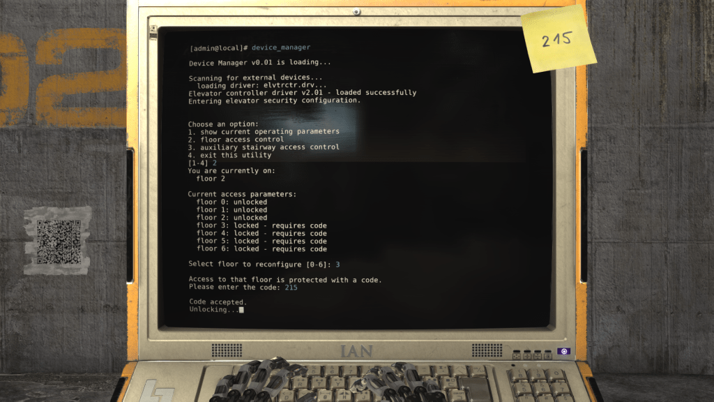 The code for the thrid floor is written down on a post-it attached to the computer terminal at the end of the second floor.