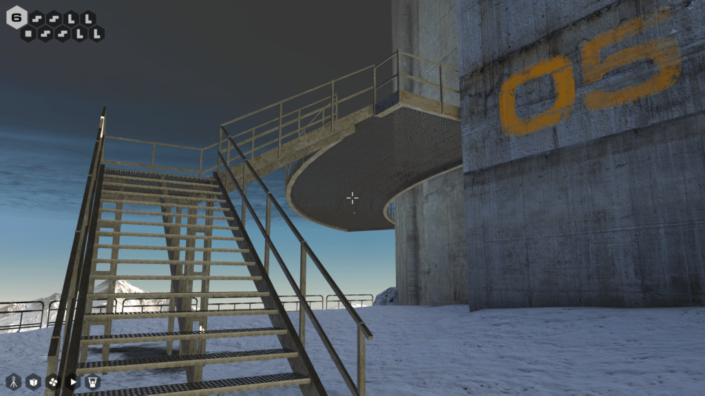 When leaving the building and ascending the outside stairs through the grey mist surrounding the top of the tower: